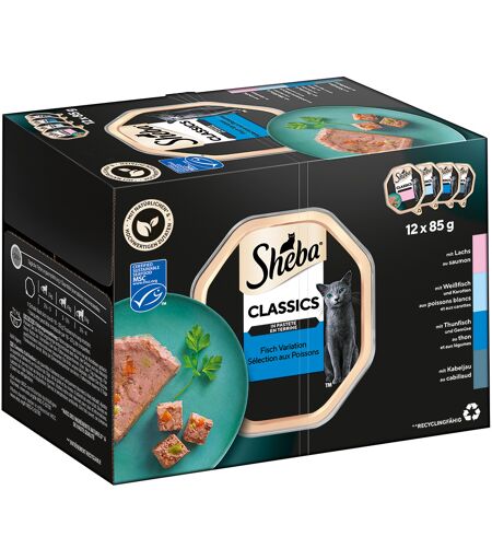 12x85g Classique en pâté Barquettes Sheba - Nourriture pour Chat