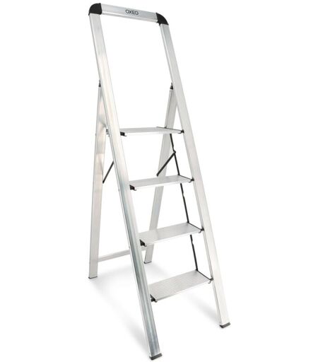 Oxeo - Escabeau ultra mince & ultra léger 100% aluminium - 4 marches - 5,5cm d'épaisseur