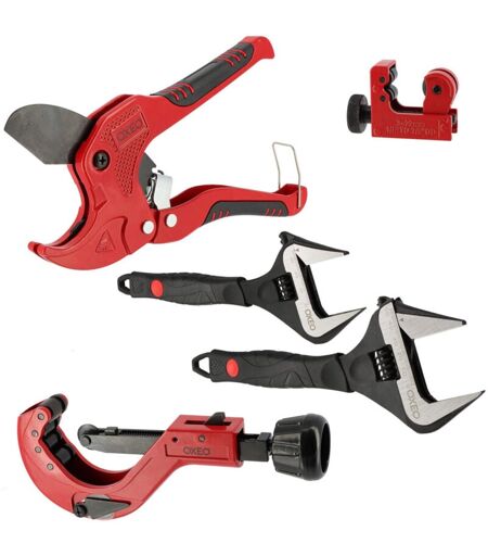 OXEO Kit plombier 5 outils - coupe tube PVC - 2 Clés à molette grande ouverture - Mini coupe tube Cuivre - Coupe tube Cuivre 5-50mm