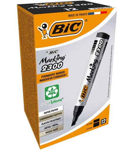 Bic Marqueur Permanent Noir 2300, Pointe Biseautée, Boîte 12 Pièces