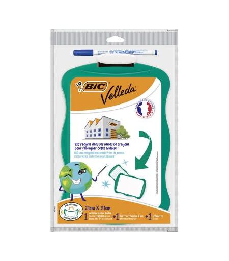 Ardoise effaçable BIC à Sec Velleda recyclée double face 21x31 cm avec feutre et effacette - Cadre vert