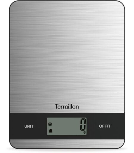 Slim steel - balance de cuisine électronique, grand écran lcd, plateau inox, design ultra slim, capacité 5 kg, grad - Terraillon