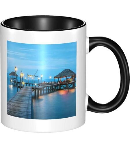 Tasse A Changement De Couleur Lake Bridge Night Sky, Tasse A The En Ceramique Fantaisie Pour Femmes Et Filles, Cadeau 330ml Noir