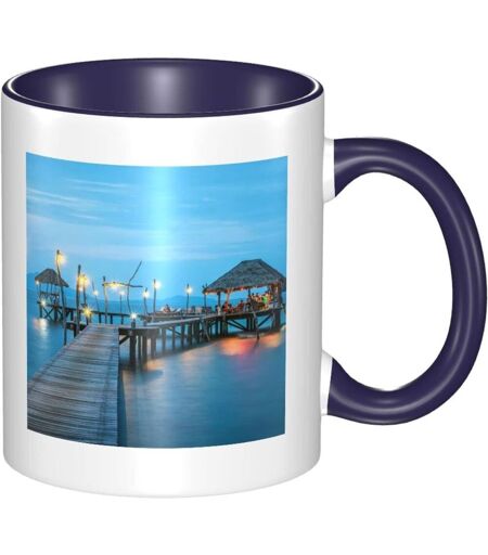 Lake Bridge Night Sky Tasse A Changement De Couleur, Tasse En Ceramique Fantaisie, Tasse A The Pour Femmes Et Filles, Cadeau 330 Ml, Bleu Marine