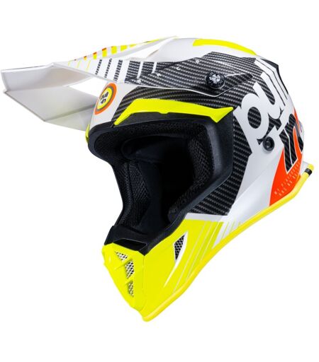 Casque de cross/enduro en polycarbonate, léger et robuste. Mentonnière fixe. Finition peinture et vernis. 2 tailles de coque: XS > M et L > XL. Intérieur amovible en tissu entièrement démontable et lavable. Fermeture par double boucle ajustable. Homologation ECE 22-05. ...