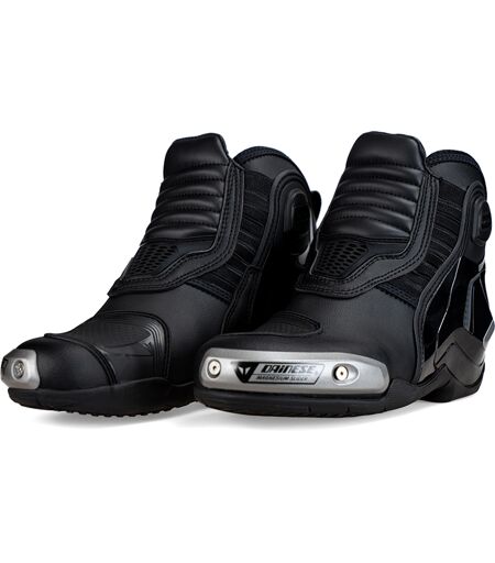 Baskets moto racing. Fabriquées en microfibre et tissu D-Stone, durabilité et résistance. Système d'enfilage rapide et soufflets d'aisance en accordéon à la cheville, flexibilité optimale. Prises d'air et doublure en maille jersey Mesh, respirabilité et confort. Semelle antidérapante absorbe les chocs, insert à déformation contrôlée protège le talon. Protège-sélecteur renforcé et slider en magnésium interchangeable, mobilité et protection accrues. Homologuées CE comme EPI. ...
