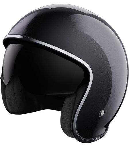 Casque moto jet typé rétro/vintage. Coque en résine thermoplastique, vernis haute résistance. Joint finition métal. Écran solaire anti-rayures. Fermeture de la jugulaire par boucle micrométrique. 2 tailles de coque et 2 tailles d'EPS. Intérieur finition cuir et suédé 100% démontable et lavable. Homologué ECE 22.06. ...