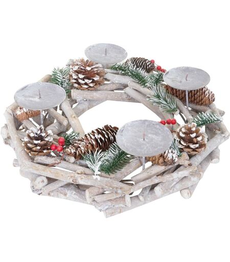 DÉCOSHOP26 Couronne de l'Avent ronde table décoration Noël bois ø 35cm blanc-gris sans bougies 040002567