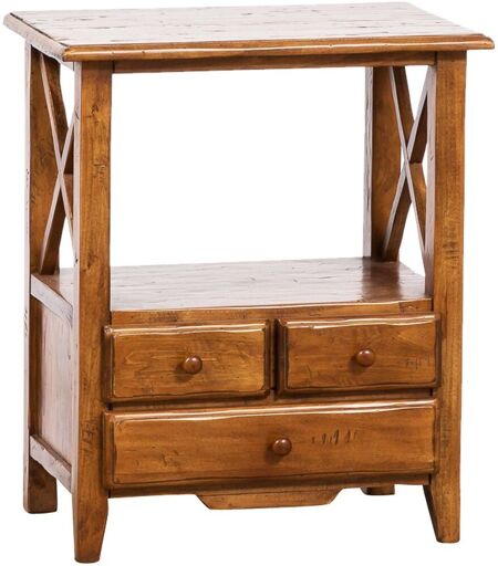 Biscottini Chevet Style Rural En Bois Massif De Tilleul, Finition Noyer L56xpr36xh66 Cm