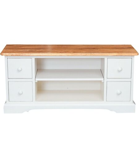 Biscottini Meuble Tv Rustique Style En Bois Massif De Tilleul Structure Blanche Antique Plan Finition Noyer L129 Xpr40xpr60 Cm