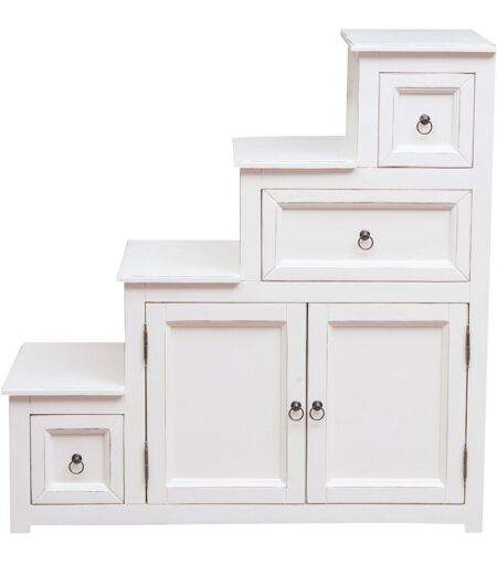 Biscottini Commode Escalier Avec Tiroirs Rustique Style Bois Massif De Tilleul Finition Blanche Antique
