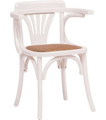 Biscottini Chaise Thonet Avec Accoudoirs En Frêne Massif Frêne Massif Finition Blanc Vieilli Et Assise En Rotin L45xpr42xh77 Cm