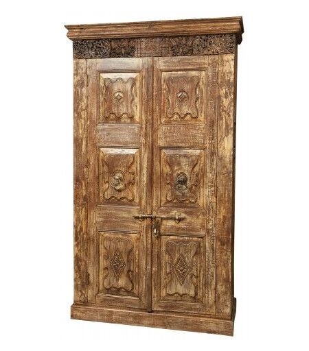 Armoire / bibliothèque en bois massif de taille longueur 126 cm, profondeur 50 cm, hauteur 217 cm. Fabriqué en utilisant comme un cadre une porte en teck antique avec des sculptures exquises et parfaitement restauré Toutes les mesures se r?fèrent à la taille maximale de l'article ...