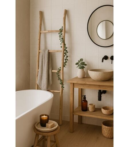 BISCOTTINI Porte-serviettes échelle en bois moderne salle de bain au sol mur décoratif Porte-serviettes échelle sur pied Porte-objet vase