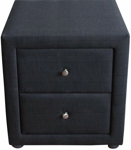 Table de chevet en tissu noir/gris avec de 2 tiroirs de rangement. Facile à assembler Dimensions (LxHxP): 53 cm x 47 cm x 41 cm Lit assorti disponible dans notre boutique Nous ne faisons pas d'expédition sur les îles (Corse inclue), Monaco et les DOM/TOM Décoshop26 MOC06008 ...