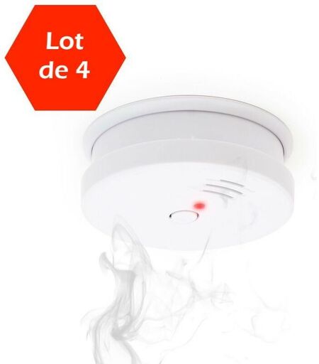 Le Poisson Qui Jardine - Lot de 4 Détecteurs de fumée + Pile 9V. Alarme Incendie Certifiée Normes Européennes - Blanc