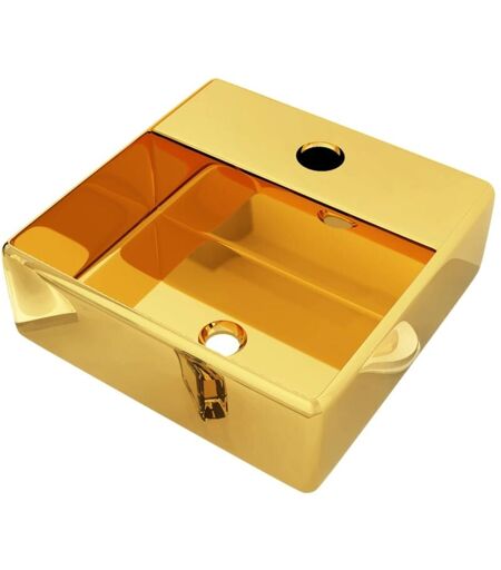 Fabriqué en céramique, ce lavabo sera un supplément chic et intemporel à toute salle de bain, salle d'eau, vestiaire ou cabines de toilettes. Le lavabo de salle de bains peut non seulement servir de récipient pour l'utilisation quotidienne, mais aussi d'ornement dans votre espace de vie. Grâce à son design tendance et contemporain avec une couleur dorée brillante, ce lavabo s'adapte à tout décor. Étant fabriqué en céramique, l'évier est très facile à nettoyer. De plus, sa finition brillante ajoute une touche de charme à ce lavabo de salle de bains. Le lavabo présente un trou de robinet pour l'installation d'un robinet. Veuillez noter que le robinet et le drain ne sont pas inclus dans la livraison. Couleur : doré Matériau : céramique Dimensions : 38 x 30 x 11,5 cm (l x P x H) Diamètre du trou de vidange : 4,5 cm Diamètre du trou de robinet : 3,5 cm Type d'installation : Au-dessus du comptoir ou suspendu au mur Avec un trou de robinet ...