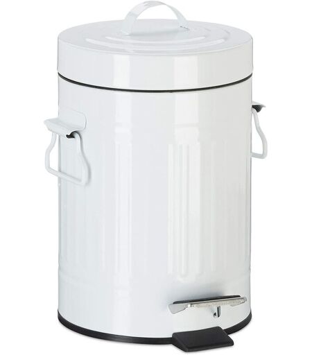 Helloshop26 - Poubelle à pédale vintage cuisine ou la salle de bain en métal 3 litres blanc