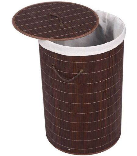 Le Poisson Qui Jardine - Panier à linge rond en bambou 75l : Pratique brun foncé