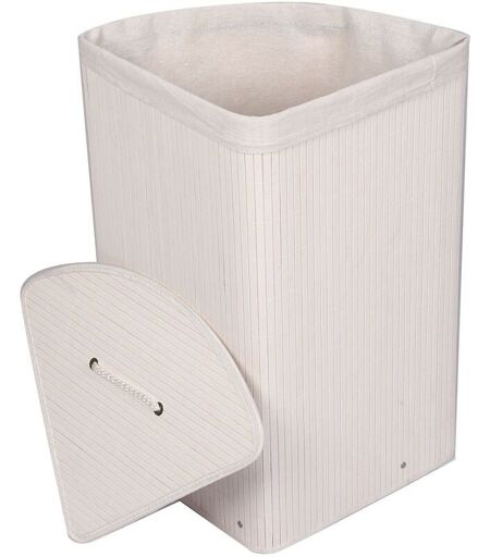 Le Poisson Qui Jardine - Panier à linge d'angle en bambou 57 l : Pratique blanc