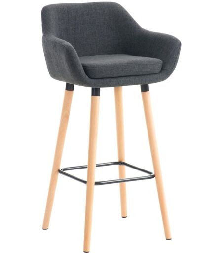 Décoshop26 - Tabouret de bar lounge x1 design scandinave assise en tissu gris foncé pieds en bois repose-pieds en métal 100004923