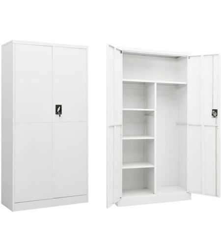 DÉCOSHOP26 Meuble de bureau armoire de rangement avec 2 portes et 4 étagères 90 x 40 x 180 cm en acier blanc DEC024487