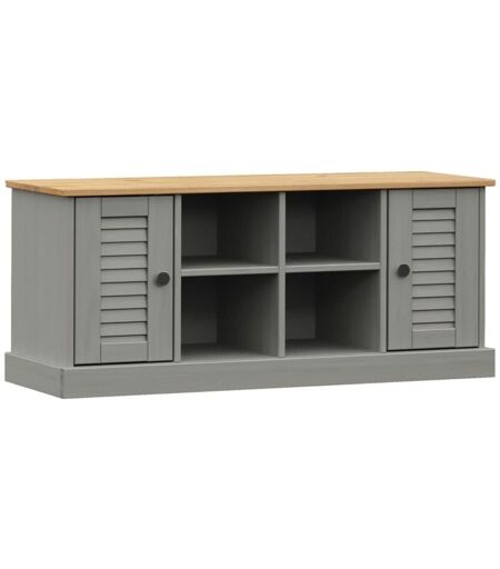 Décoshop26 - Banc de rangement à chaussures avec 4 compartiments et 2 petites armoires 106 x 35 x 45 cm en bois de pin gris DEC024963