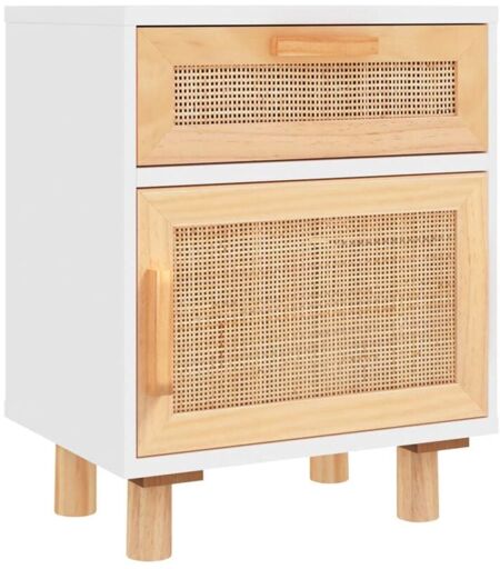 Décoshop26 - Table de chevet avec tiroir et compartiment en bois de pin blanc et rotin naturel DEC033434