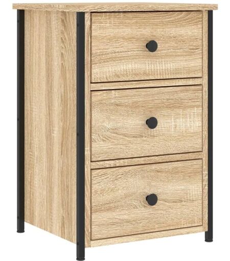 Décoshop26 - Table de chevet avec 3 tiroirs 40 x 36 x 60 cm bois d'ingénierie couleur chêne et fer DEC033848