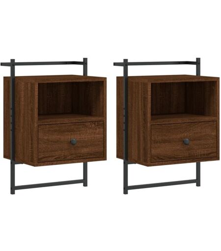 Décoshop26 - Lot de 2 tables de chevet murale avec tiroir et compartiment ouvert 40 x 30 x 61 cm bois d'ingénierie marron et métal DEC034155