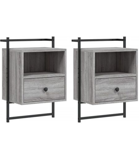 DÉCOSHOP26 Set de 2 tables de chevet murale avec tiroir et compartiment 40 x 30 x 61 cm bois d'ingénierie gris et métal DEC034158