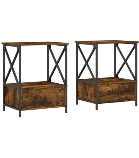 Décoshop26 - Lot de 2 tables de chevet avec tiroir et étagère 50 x 41 x 65 cm bois d'ingénierie marron et fer DEC035147