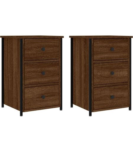 DÉCOSHOP26 Lot de 2 tables de chevet avec 3 tiroirs 40 x 36 x 60cm bois d'ingénierie marron et fer DEC035847