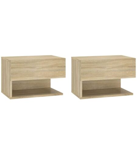 Décoshop26 - Lot de 2 tables de chevet murales avec tiroir et étagère en bois d'ingénierie couleur chêne DEC036067