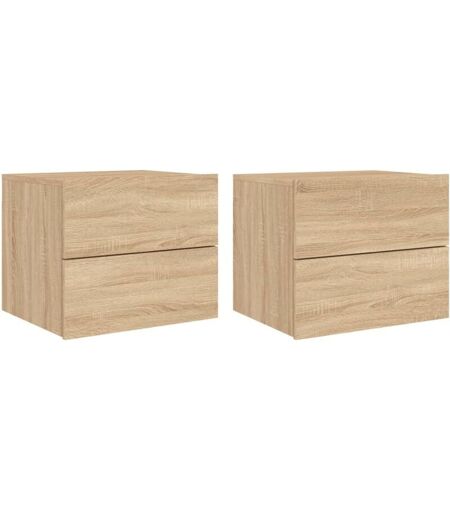 DÉCOSHOP26 Lot de 2 tables de chevet murales avec lumières LED et tiroirs en bois d'ingénierie couleur chêne DEC036144