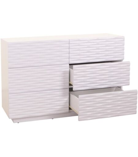 DÉCOSHOP26 Commode armoire buffet 6 tiroirs design 3d ouverture par pression en bois massif de manguier mdf 81x120x42 cm blanc brillant 040006529