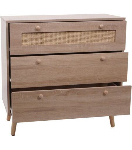 Décoshop26 - Commode avec 3 tiroirs buffet en kubu bois de rotin mélamine 78x80x39 cm aspect chêne 040006540