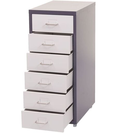 Décoshop26 - Caisson à tiroirs armoire de bureau 69x28x41 cm 6 tiroirs en acier gris foncé blanc 040008260