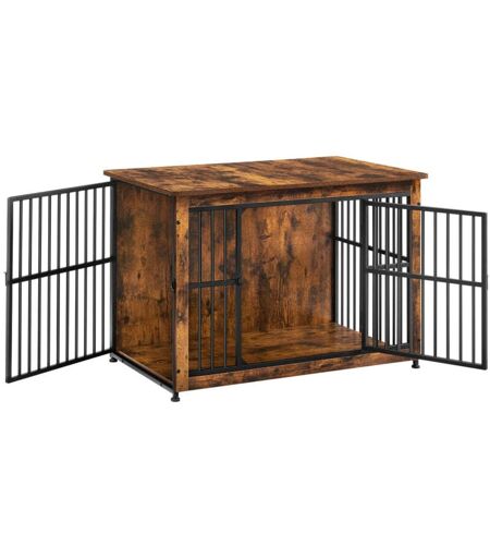 HELLOSHOP26 Meuble cage pour chien table d’appoint niche moderne pour chiens jusqu’à 32 kg cage solide pour chien avec fond plein maison de chien à double porte