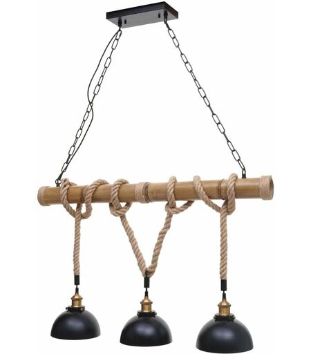 Décoshop26 - Suspension Lampe lustres style industrielle vintage bambou corde métal noir 3x abat-jour dôme 040003598