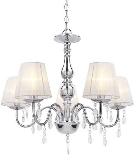 Lustre élégant Notre lustre élégant et décoratif est l'accessoire idéal de toutes les pièces de votre maison : ce plafonnier embellit votre salle à manger, votre salon, votre chambre à coucher, etc. Description : Matière : aluminium, plastique Couleur : chrome, blanc Dimensions : hauteur (sans chaîne) : 45 cm diamètre : 54 cm Douille : 5 x E14, max. 40W (sans ampoule) Caractáristiques : - éclairage efficace - design élégant signe CE, conforme RoHs Pronostic : Vous trouvez plusieurs ampoules dans notre magasin. Contenu de la livraison : 1 x lampe ...