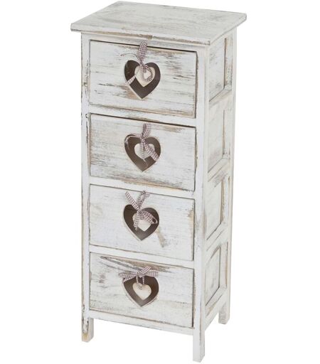 Petit Meuble De Rangement Table De Chevet 4 Tiroirs Avec Motif Coeurs 70x29x25cm Style Vintage Blanc 04_0002529