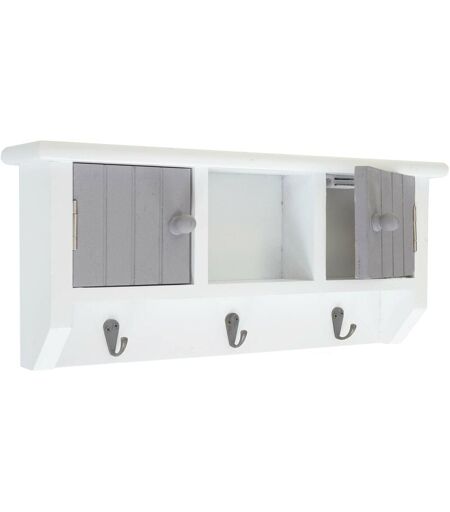 Décoshop26 - Porte-clés meuble d'entrée mural avec portes et étagère en bois massif gris-blanc 040003587