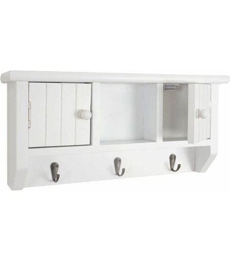 Décoshop26 - Porte-clés meuble d'entrée mural avec portes et étagère en bois massif blanc 040003586