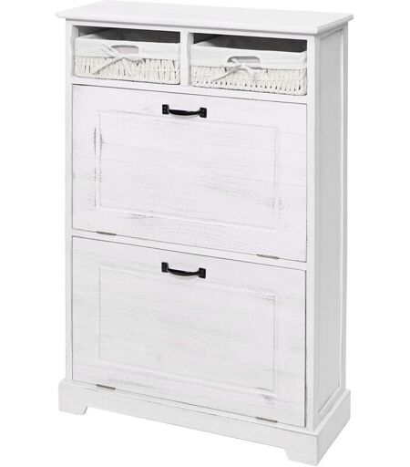 Décoshop26 - Meuble à chaussures étagère à chaussures avec paniers de rangement en bois massif aspect vintage 100x60x24cm blanc 040002449