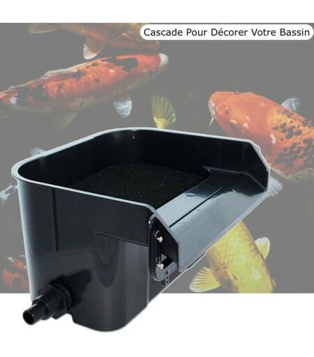 Description générale Cette cascade élégante est équipée d'un filtre intégré qui retient efficacement les grosses particules et les saletés, assurant ainsi une eau plus propre pour votre bassin de jardin. En plus de sa fonctionnalité, elle offre une superbe chute d'eau, ajoutant une touche de beauté et de tranquillité à votre espace extérieur. Spécifications techniques Dimensions : 42 cm de long, 36 cm de large et 25 cm de haut Options de tuyau : Compatible avec des tuyaux de 25 mm ou 40 mm de diamètre Compatibilité et accessoires Livrée avec toutes les connexions nécessaires pour une installation facile et rapide Installation La cascade peut être branchée soit à gauche, soit à droite, selon vos préférences et la configuration de votre bassin. Utilisation Cette cascade est idéale pour les bassins de jardin et peut également être utilisée pour les piscines, ajoutant une fonctionnalité supplémentaire à votre équipement de filtration. ...