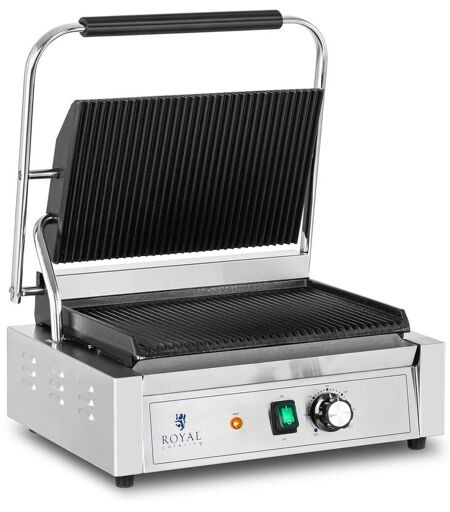 Des burgers bien juteux, préparés sur une machine à panini peu encombrante de 2,200 W La machine à panini est un appareil de cuisson professionnel qui se destine tant aux restaurants d’hôtel, établissements de restauration rapide et services de traiteur qu'aux particuliers. Ce matériel de restauration Royal Catering convient à une multitudes d'applications et il est idéal pour préparer des en-cas chauds tels que des paninis, des sandwichs, des légumes grillés, des burgers ou des steaks grâce à sa surface de cuisson très spacieuse. Une cuisson efficace grâce à une très grande plaque Les plaques en fonte rainurées de cet appareil sont chauffée par un élément puissant de 2,200 W qui assure une montée en température rapide. Grâce à elles, ce grill à panini professionnel, économe en énergie, répartit la chaleur de façon uniforme sur le dessus et le dessous des aliments que vous préparez. Ce modèle comporte une plaque supérieure et une plaque inférieure de 33 x 22 cm chacune. Les plaques ...