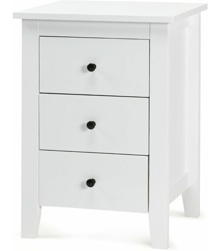 Notre table de chevet à 3 tiroirs vous permet de ranger vos objets personnels. Multifonctions, comme table de chevet ou table d'appoint Grand espace de rangement avec 3 tiroirs et un plateau spacieux Panneaux MDF et agglomérés de qualité, écologiques et durables Peintures par pulvérisation, un touche agréable et bonne résistance à l'usure Structure stable pour supporter une charge importante Facile à ouvrir grâce à une glissière et une poignée, facile à nettoyer Un style moderne qui s'adapte à tous les décors et autres meubles Spécifications Couleur : blanc Matériaux : panneaux agglomérés et MDF Dimensions : 46 x 37 x 65 cm (L x l x H) Dimensions de chaque tiroir : 29 x 27 x 9 cm (L x l x H) Dimensions du plateau : 46 x 37 cm (L x l) Poids net : 13 kg Capacité de charge du plateau : 30 kg Capacité de charge de chaque tiroir : 7,7 kg Nous ne faisons pas d'expédition sur les îles (Corse inclue), Monaco et les DOM/TOM Décoshop26 20_0001202 ...