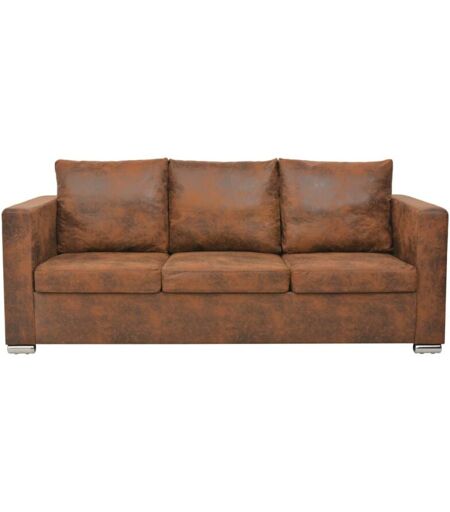 Description générale Ce canapé à 3 places sera un excellent ajout à votre maison. Grâce à son design moderne et élégant, il s'adapte à tous les décors de salon. Doté d'un rembourrage épais en daim artificiel et d'un cadre en bois de haute qualité, il offre un confort d'assise exceptionnel, idéal pour bavarder, lire, regarder la télévision ou simplement se détendre. Spécifications techniques Couleur : marron Matériaux : Cadre en bois, cuir daim artificiel, mousse Dimensions : 191 x 73 x 82 cm (l x P x H) Profondeur du siège : 46 cm Largeur du siège : 164 cm Hauteur du siège : 40 cm Coussins de siège et de dossier amovibles Aspect vintage en daim Assemblage facile Matériel : Polyester 100% Compatibilité et accessoires Aucun accessoire spécifique n'est requis pour le canapé, mais il peut être assorti avec des coussins décoratifs ou des plaids pour un confort supplémentaire. Installation L'assemblage du canapé est simple et rapide, ne nécessitant pas d'outils spécifiques. Suivez les ...