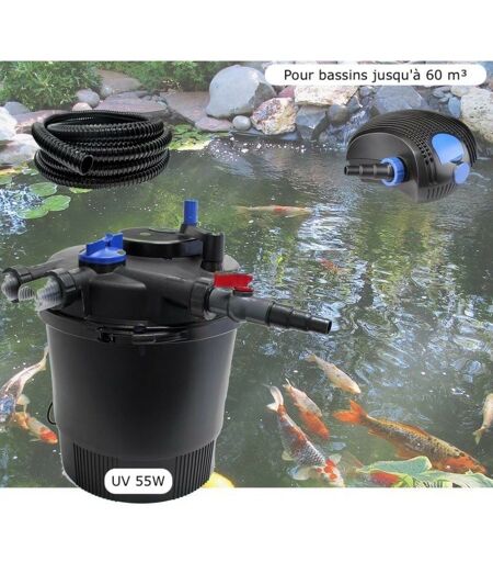 Le Poisson Qui Jardine - Kit Filtration Pression uv 55W, Pompe, Tuyau, Pour Bassins De 60000 l